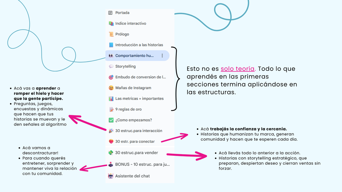 Es una guía interactiva y acompañada, pensada para que tus historias dejen de ser improvisadas y se conviertan en una verdadera herramienta de comunidad, confianza y ventas.